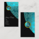 AQUA BLUE DAMASK GEMSTONE MONOGRAM Black Teal Business Card