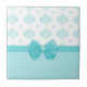 Aqua Blue Damask With Turquoise Ribbon Ceramic Tile