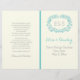 Aqua foliage wreath frame monogram wedding ceremony and party folded program with initials featuring an aqua blue frame made of leaves and text in grey on ivory. This modern floral, stylish and elegant monogrammed template is a totally customizable design part of a wedding set perfect for your summer wedding. You will have to fold it in the center. Choose only this type of paper-value as it folds well.