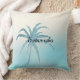 Aqua Blue Glitzy Sparkle Tropical Palm Tree Throw Pillow