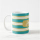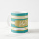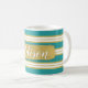 Aqua Blue Gold Stripe Pattern Custom Name Coffee Mug