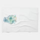 Our custom kitchen towel adorned with soft pastel aqua blue floral in watering can. View our full line of products in our Zazzle store.