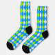 AQUA BLUE #0096FF & LIME GREEN #8EFA00 Argyle Pattern Socks.