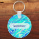Aqua Blue Marble Texture Abstract Liquid Pattern Keychain