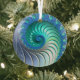 Aqua Blue Nautilus Shell Fractal Spiral Suncatcher Glass Ornament