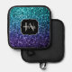 Aqua blue ombre faux glitter sparkles Pot Holder. Monogram Personalize with your custom initial and name. Beautiful girly glamorous dark and light blue shiny glitters sparkles aqua purple ombre summer colors. Photo of blue sparkles, not real glitter! Faux sparkles! No messy glitter to the touch!