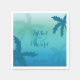 Aqua Blue Palm Trees With Names And Date Wedding Paper Napkins
