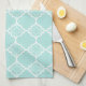 Aqua Blue Quatrefoil Geometric Pattern Kitchen Towel
