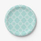 Aqua Blue Quatrefoil Geometric Pattern Paper Plates