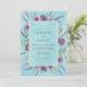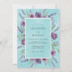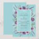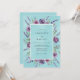 This design features a serene aqua blue backdrop adorned with soft watercolor purple roses and delicate lavender sprigs. The lush floral arrangement creates a romantic and whimsical mood for a spring or summer event. Sage green foliage adds a natural touch to the vibrant botanical palette.