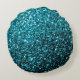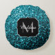 Aqua blue shiny faux glitter sparkles Monogram Round Pillow