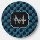 Aqua blue sparkles diamond pattern black Monogram Wireless Charger