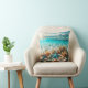 Aqua Blue Starfish Seashell Tropical Beachy Throw Pillow