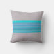 Aqua Blue Striped Pattern on Silver Gray Throw Pillow
