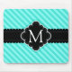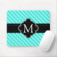 Aqua Blue Stripes Pattern Black Custom Monogram Mouse Pad