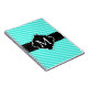 Aqua Blue Stripes Pattern Black Custom Monogram Notebook