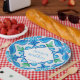 Wedding menu cards Mexican Talavera monogrammed wedding paper plates template Aqua Blue Azulejo Talavera Spanish Mexican tiles elegant wedding plates, vibrant bold colors customized paper plates personalized wedding reception decor personalized plates