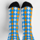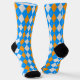 AQUA BLUE #0096FF & TANGERINE ORANGE #FF9300 Argyle Pattern Socks.