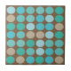 A colorful modern pattern with my original abstract art, vector art and design. This contemporary ceramic tile has a geometric graphic art pattern of dots/circles with lovely shades of aqua blue, teal, green, and chocolate brown. These modern design tiles would look great in any modern or contemporary home decor. You can use them as trivets or to decorate your home!