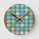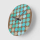 Aqua Blue Teal & Brown Dots Pattern Modern Round Clock