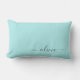Aqua Blue Teal Girly Script Monogram Name Modern Lumbar Pillow