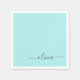 Aqua Blue Teal Girly Script Monogram Name Modern Napkins