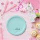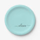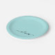 Aqua Blue Teal Girly Script Monogram Name Modern Paper Plates