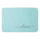 Aqua Blue Teal Modern Script Girly Monogram Name Bath Mat