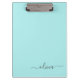 Aqua Blue Teal Modern Script Girly Monogram Name Clipboard