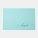 Aqua Blue Teal Modern Script Girly Monogram Name Doormat