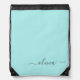 Aqua Blue Teal Modern Script Girly Monogram Name Drawstring Bag