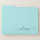 Aqua Blue Teal Modern Script Girly Monogram Name File Folder