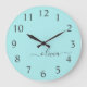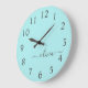 Aqua Blue Teal Modern Script Girly Monogram Name Large Clock