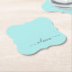 Aqua Blue Teal Modern Script Girly Monogram Name Paper Coaster
