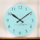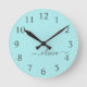 Aqua Blue Teal Modern Script Girly Monogram Name Round Clock
