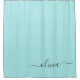 Aqua Blue Teal Modern Script Girly Monogram Name Shower Curtain