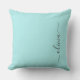 Aqua Blue Teal Modern Script Girly Monogram Name Throw Pillow