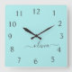 Aqua Blue Teal Script Monogram Girly Name Square Wall Clock