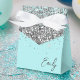 Aqua Blue Teal Silver Girly Glitter Monogram Name Favor Boxes
