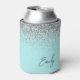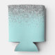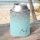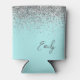 Aqua Blue Teal Silver Glitter Monogram Can Cooler