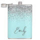 Aqua Blue Teal Silver Glitter Monogram Name and Initial Party Flask. This makes the perfect sweet 16 birthday, wedding, bridal shower, anniversary, baby shower or bachelorette party gift for someone that loves glam luxury and chic styles.