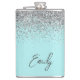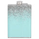 Aqua Blue Teal Silver Glitter Monogram Flask