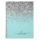 Aqua Blue Teal Silver Glitter Monogram Notebook