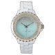 Aqua Blue Teal Silver Glitter Monogram Watch