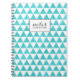 A chic and stylish spiral notebook with a modern aqua blue and white geometric triangle pattern. Personalize the front with any name.