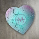 This beautiful paperweight has a background of violet lavender and aqua blue with water droplet circles on it. At the center is a solid aqua blue circle banner with your monogram in violet pink, and your name written in darker script over it. Pretty!