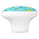 Aqua Blue Watercolor Daisy Pattern Ceramic Knob