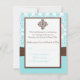 Aqua Blue, White Damask with Brown FAUX Ribbon RSVP Card