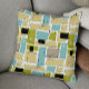 Aqua Blue Yellow Abstract Squares Mid Century Throw Pillow