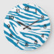 Aqua Blue Zebra Print Large Clock